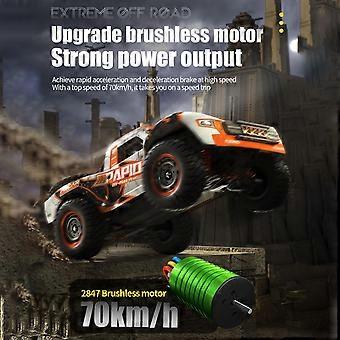 Feature:1. 4WD Off-road Car: This remote control car is designed for off-road adventures, with a 4-wheel drive system that provides excellent traction and stability on various terrains. It can easily conquer rough roads, grass, sand, and even rocky surfaces.2. Brushless Truck: The car is equipped with a brushless motor, which offers higher power and efficiency compared to brushed motors. It provides a smoother and more responsive driving experience, allowing the car to reach high speeds and perform quick acceleration.3. 2.4GHz Full Proportional Control: The remote control car operates on a 2.4GHz frequency, ensuring a stable and interference-free connection between the transmitter and the car. The full proportional control allows precise steering and throttle control, giving you a realistic and immersive driving experience.Specification:Features:4WD Off-road Car: This remote control car is designed for off-road adventures, with a 4-wheel drive system that provides excellent traction and stability on various terrains. It can easily conquer rough roads, grass, sand, and even rocky surfaces.Brushless Truck: The car is equipped with a brushless motor, which offers higher power and efficiency compared to brushed motors. It provides a smoother and more responsive driving experience, allowing the car to reach high speeds and perform quick acceleration.2.4GHz Full Proportional Control: The remote control car operates on a 2.4GHz frequency, ensuring a stable and interference-free connection between the transmitter and the car. The full proportional control allows precise steering and throttle control, giving you a realistic and immersive driving experience.High Speed: With a top speed of 70km/h, this remote control car is built for speed enthusiasts. It can race across open spaces and tracks, providing thrilling and adrenaline-pumping experiences for both kids and adults.Gifts for Kids and Adults: This remote control car is suitable for both kids and adults who love remote control cars and off-road adventures. It can be a great gift for birthdays, holidays, or any special occasion, bringing joy and excitement to the recipients.3 Light Modes: The car shell is equipped with LED headlights, LED roof lights, and LED taillights. Three speed mode: constant light, slow flashing, fast flashing. These light modes add a cool and stylish touch to the car, making it visually appealing during both day and night driving.Specifications:Item Name: Remote Control CarMain Material: Metal, PA, NylonFrequency: 2.4GHzBattery: 7.4V 1500mahSpeed: 70km/hMotor: 2847 Brushless Motor (4000 KV)Charging Time: 3-3.5HWorking Time: 15-18minServo: Three Wire 17G Digital ServoESC: 35A ESC (Anti-splashing)Remote Control Distance: ≥120 MetersRemote Controller Battery: 3*AA Battery(not Included)Size: 21*35*15cmWeight: 1260gNote:* Don't over-charge or over-discharge batteries. Don't put it beside the high-temperature condition. Don't throw it into the fire. Don't throw it into the water.* There could be some deviations due to manual measurement or slight color difference owing to photographing condition. Thank you for your understanding.Package Information:Package Size: 35.5*18.8*26cmPackage Weight: 2000gGift Box PackagePackage List:1* Remote Control Car1* Remote Controller1* Battery1* Balance Charger1* Wrench1* Other Fittings1* User ManualPackage List:1* Remote Control Car1* Remote Controller1* Battery1* Balance Charger1* Wrench1* Other Fittings1* User Manual