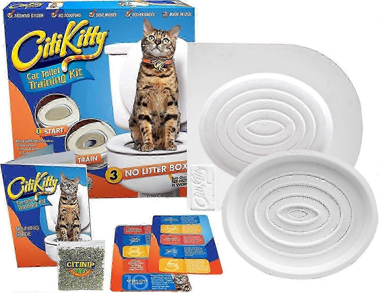 PATENTED CAT TRAINING SEAT and INSERT: Transition your cat(s) to the toilet instead of the litter boxONE SIZE FITS ALL: CitiKitty fits both round and elongated toilets, no special sizing requiredPROVEN METHOD: CitiKitty's proven cat toilet training method has been used by over a million catsSAVES YOU MONEY and TIME: Save thousands of dollars on kitty litter and never scoop a litter box againPUBLICLY ENDORSED: CitiKitty's training method is endorsed by veterinarians, cat behaviorists and celebritiesMADE IN THE USA: With environmentally sourced and recycled materialsA COMPANY YOU CAN TRUST: Founded in 2005, CitiKitty has been training cats around the world for nearly two decades Note: Due to the light and screen setting difference, the item's color may be slightly different from the pictures. Please allow slight dimension difference due to different manual measurement.