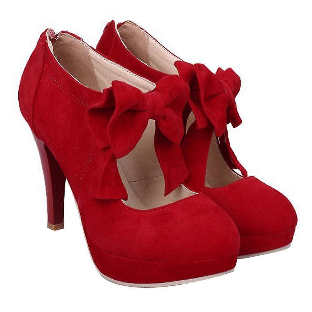 Lady's Heels Round Toe Bowknot Comfortable Durable Shoes for Special Occasions Red 1 Pair