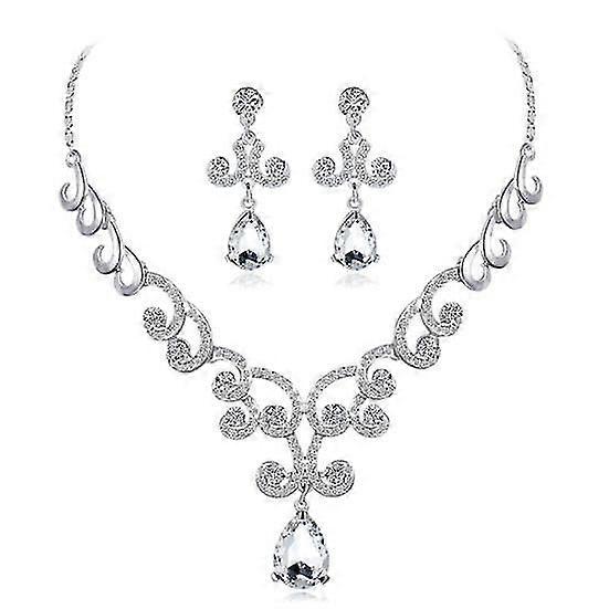 Lady Fashion Rhinestone Pendant Earrings Necklace Luxury Bridal Jewelry Set
