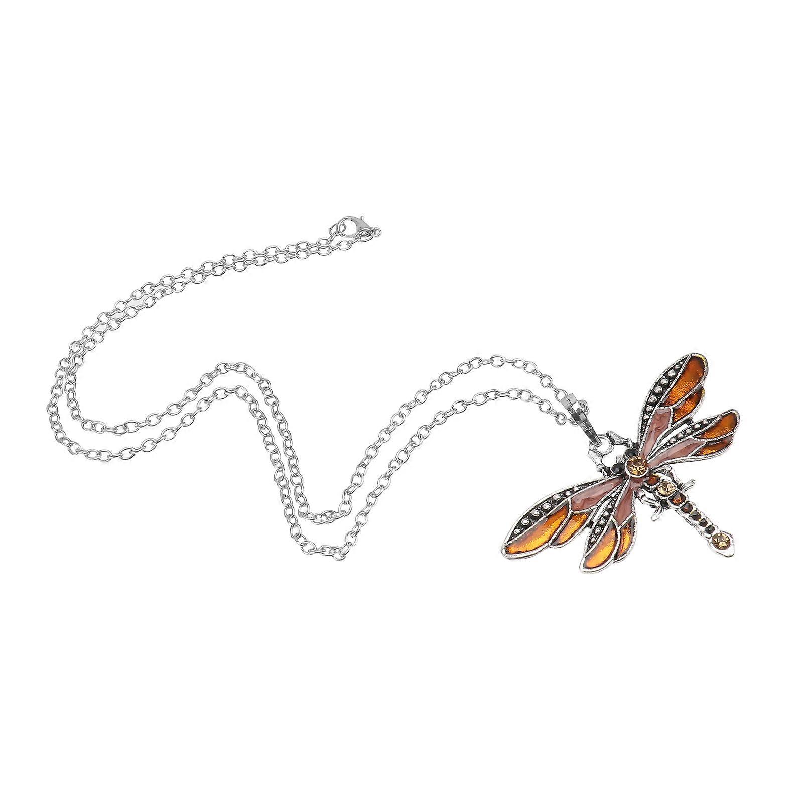 Lady Necklace Dragonfly Pendant Jewelry Romantic Style Coffee Color Rhinestone Alloy 1Pack