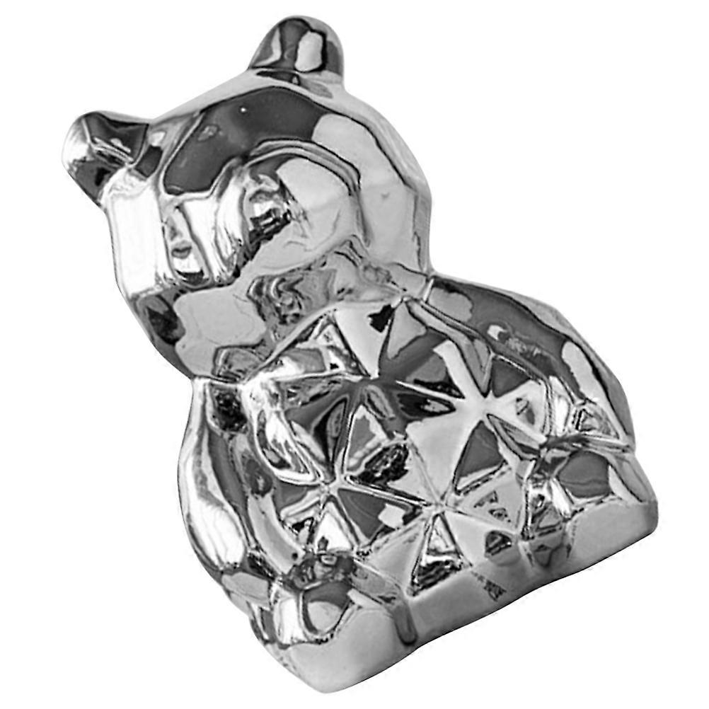 Ceramic Bear Decor Small Statue Decor Office Decor Collectible present Silver 9x9x12.5cm 1Pcs