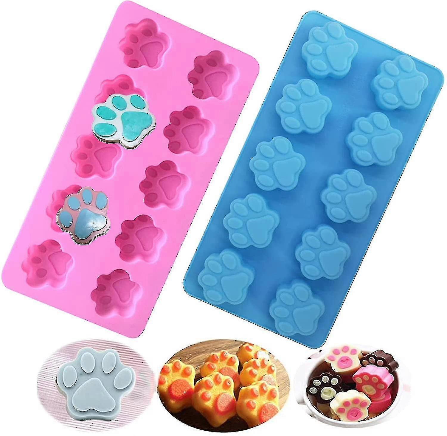 Silicone Candy Mold Non-stick Puppy Paw Shape (2 Pieces - Pink, Blue)
