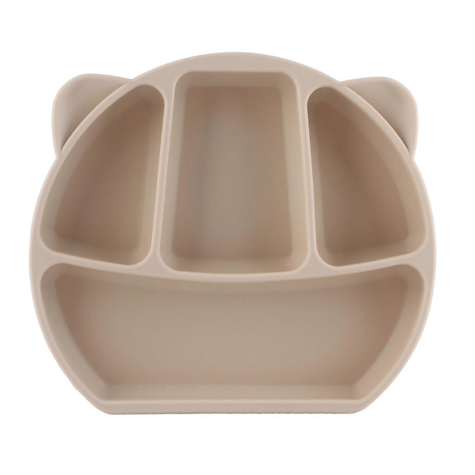 Silicone Suction Plate Safe Food Grade One Piece Cute Panda Shape Strong Suction Grip Divided Dish for Infant Toddler Beige