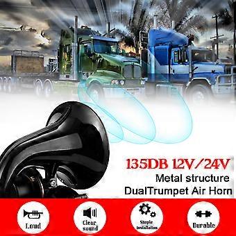 Truck 135db Loud Air Horn 12/24V SuperLoud Trumpet Air Horn with Electric Valve Flat for Auto Vehicle Trucks