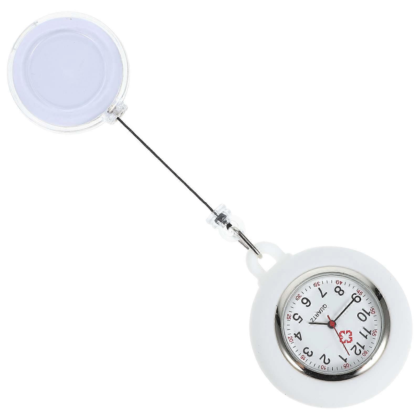 Badge Reel Pocket Watch Fashion Pocket Watch Clip-on Pocket Hanging Watch Creative Pocket Hanging Watch Test Watch for Students (White)