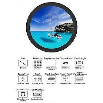 5 Inch Round Touch Display IPS 1080P 60Hz 10 Points 5V Type C Tempered Glass Round LCD Module for RasPi