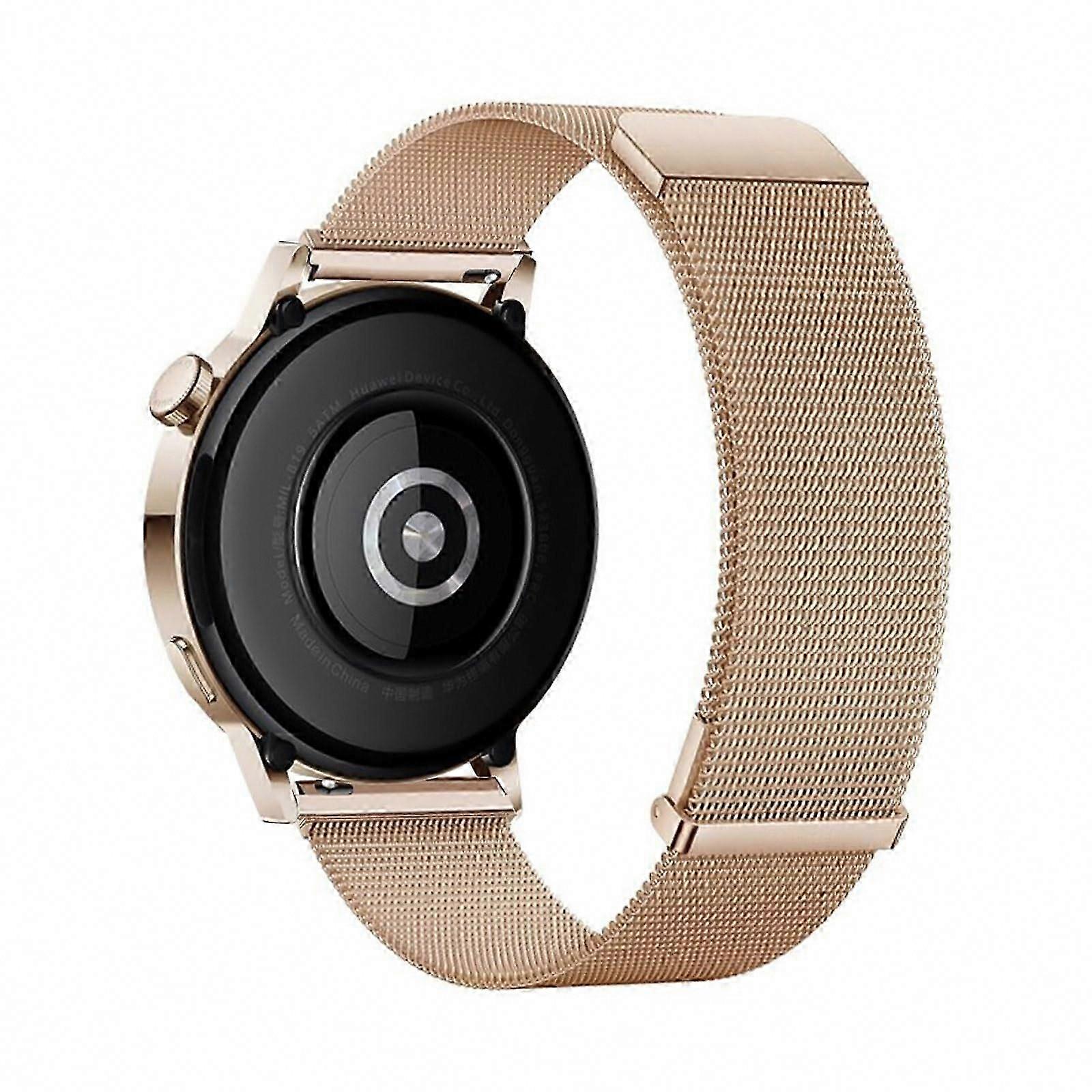 1. Compatible models: This magnetic stainless steel strap is designed specifically for the Huawei Watch GT3 42 mm. Please confirm your smartwatch is compatible with the Huawei Watch GT3 42 mm band before ordering.2. Material selection: Crafted from quality stainless steel, this replacement strap for the Huawei Watch GT3 42 mm features an advanced mesh design, ensuring a smooth fit around your wrist while delivering a comfortable and breathable wearing experience.3. Exterior features: The magnetic strap for the Huawei Watch GT3 42 mm has an elegant and sleek design with soft, comfortable edges. An additional PVD (physical vapor deposition) coating enhances the stainless steel's durability and gives it a distinctive finish. It is suitable for everyday wear.4. Easy to wear: Equipped with a dual magnetic clasp, the strap for the Huawei Watch GT3 42 mm offers a comfortable fit. The ergonomic design ensures allday comfort, and the magnetic functionality allows for quick and effortless wearing and removal, which is ideal for daily use.