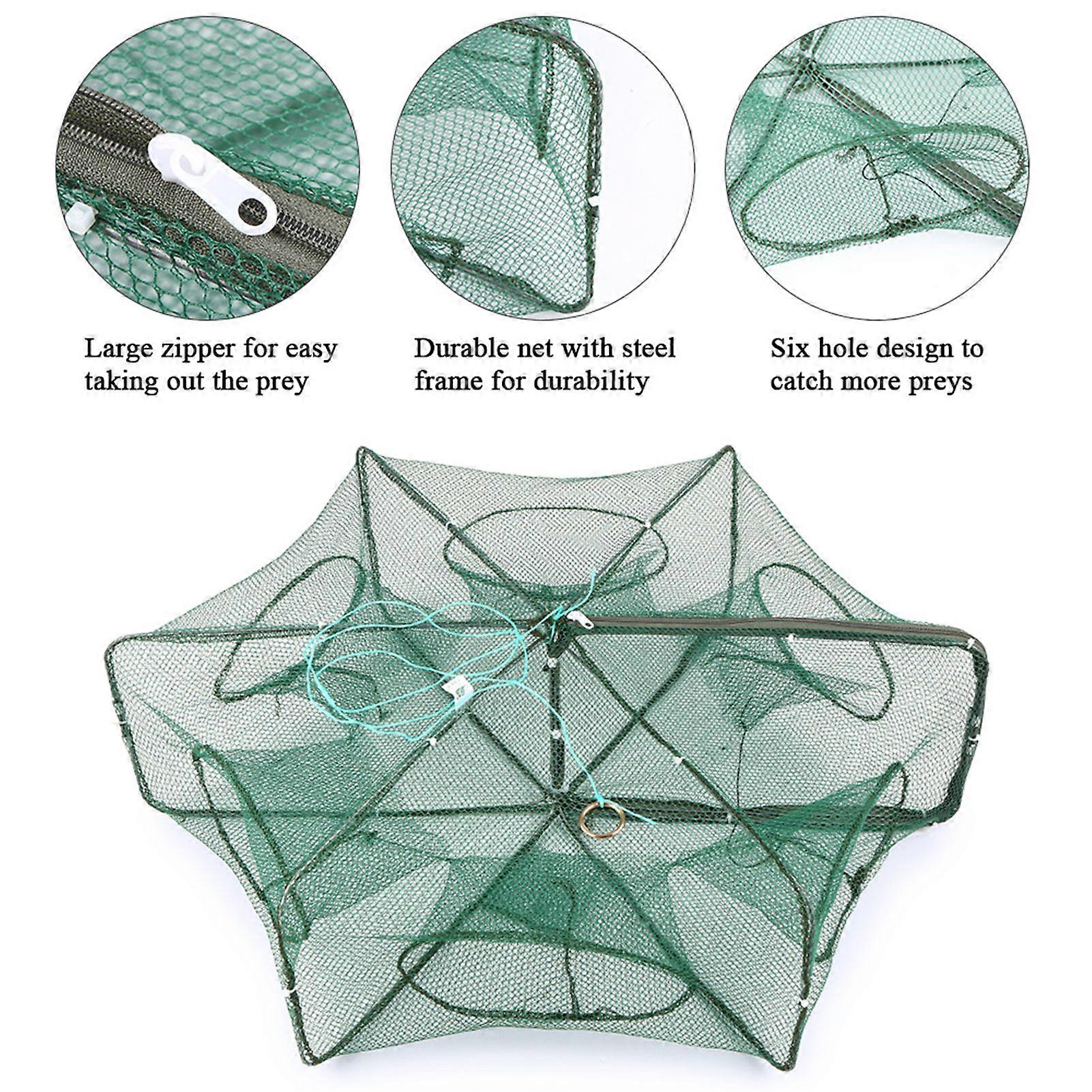 Foldable Fishing Net Hexagon 6 Hole Trap, Durable Mesh for Shrimp Minnow Crab, Easy Catch Bait Cage, Portable Collapsible Design