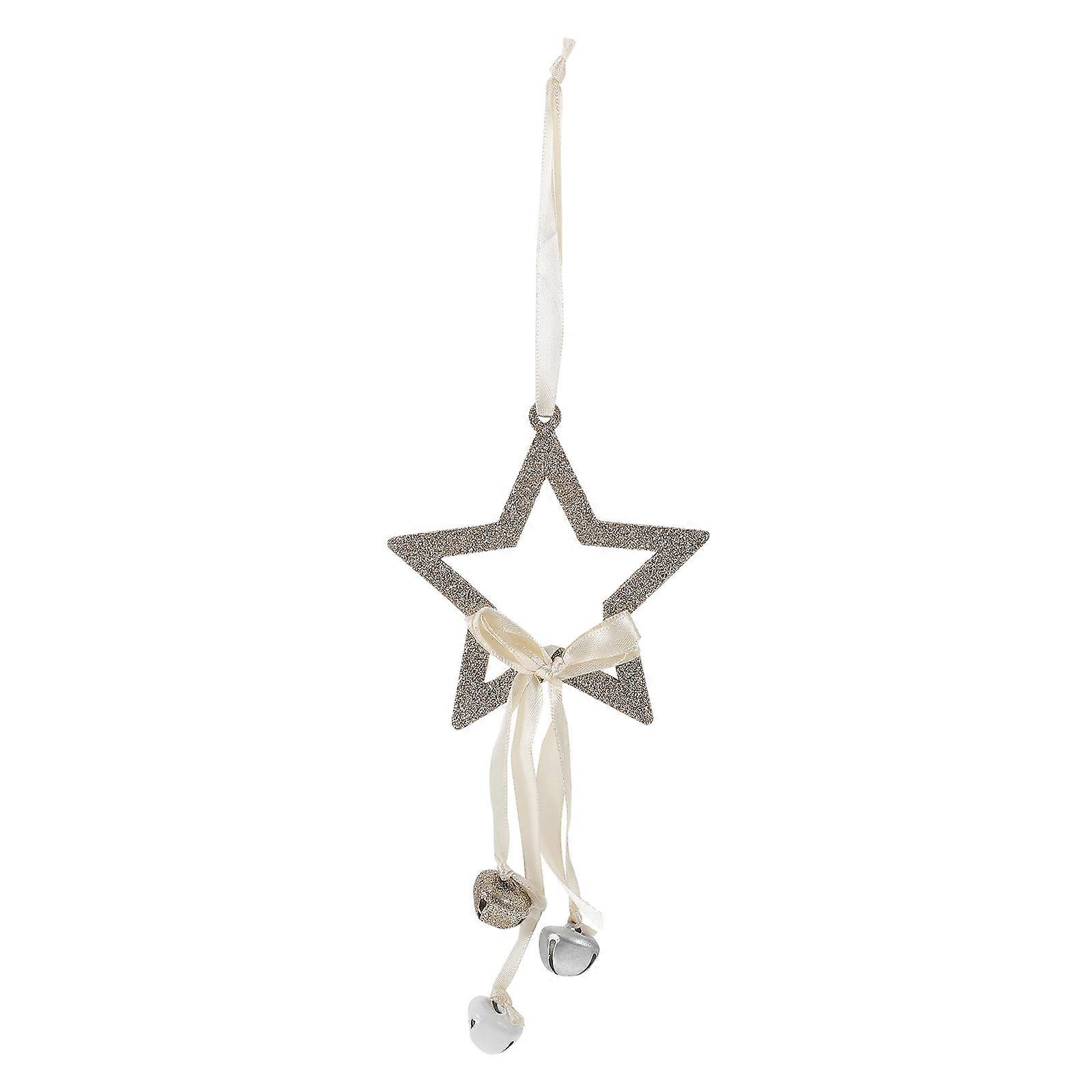 Tree Ornament Bell Wooden Christmas Ornament Jingle Bell Pendant House Decoration Star Shape Design Multi 1Pack