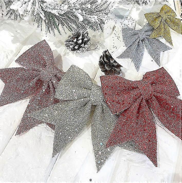Christmas Tree Top Topper Ribbon Bow Light Up Bow Xmas Party Hanging Decor 12x15cm