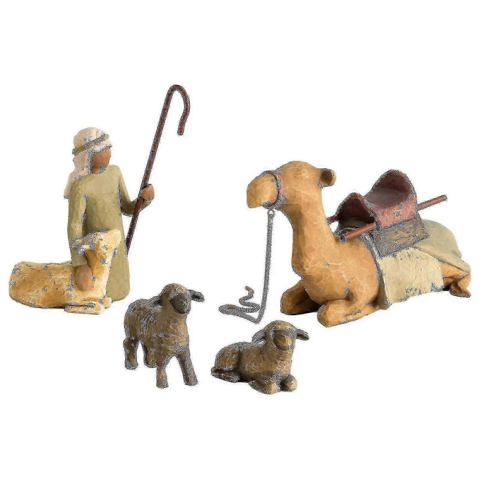 Willow Hand-painted Sculpture Figures, Nativity Set Shepherds and Stable Animals, 4-Pack Holiday Decorations