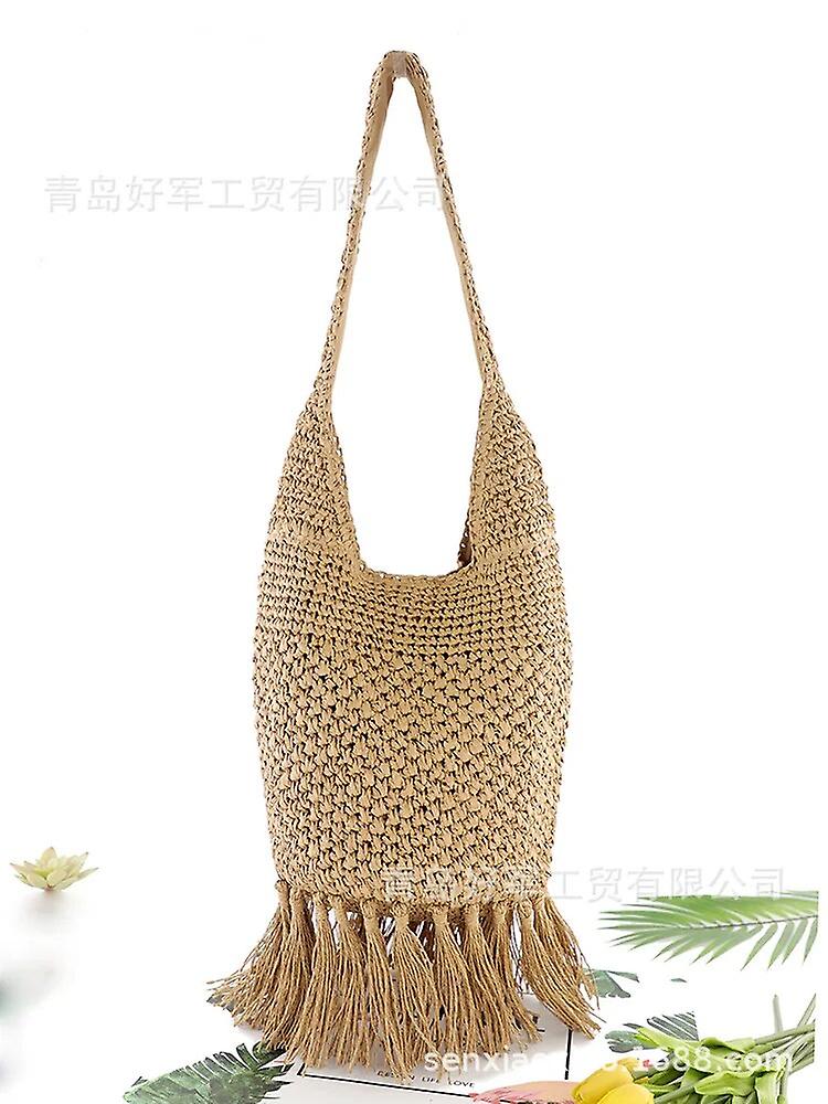 Tassel Head Paper Rope Straw Woven Bag Fashion Pineapple Button Beach Woven Leisure Women's Shoulder Bag