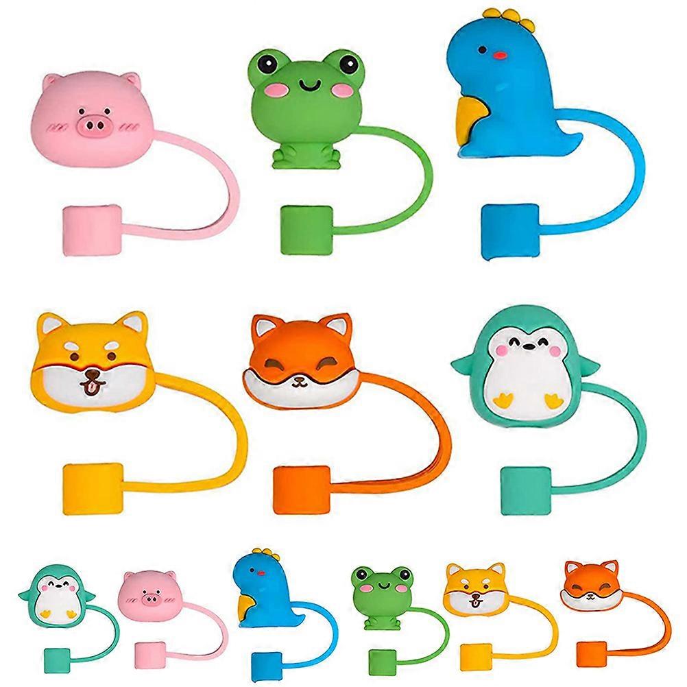 Drinking Straw Topper Cute Animal Straw Decor Silicone Party Office Travel Camping 2.5X2CM 12Pcs