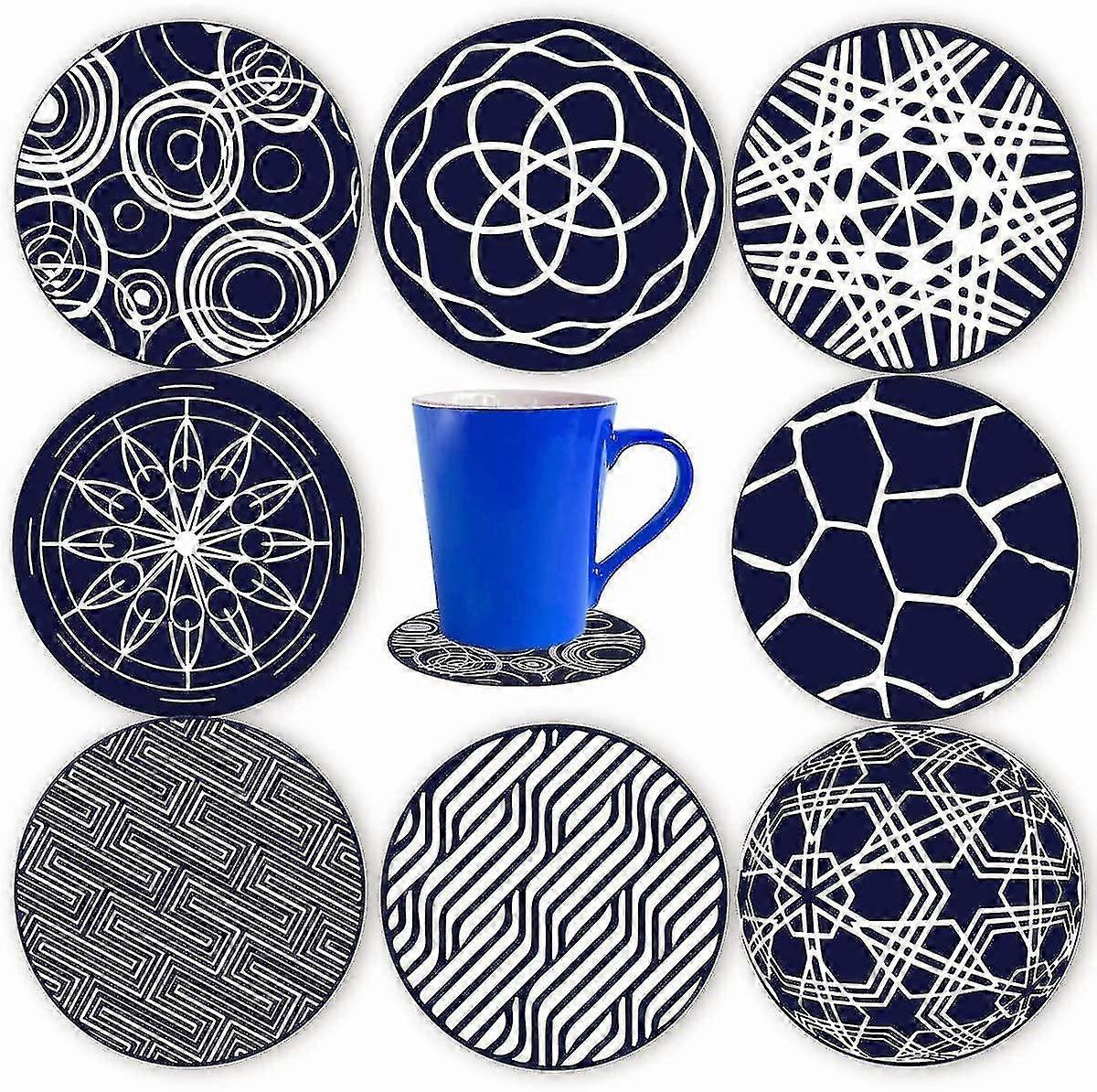 Drink Coasters Set Of 8, 10cm Blue Silicone Round Coasters, Mug Mat Cup Coasters For Coffee, Non Slip Silicone Pad Mat, Tea, Beer,wine Glass, Mug, Bot