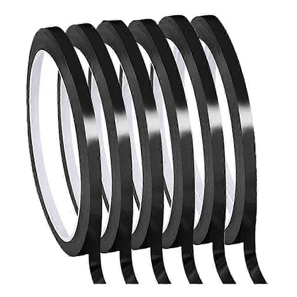 Whiteboard Pinstripe Tape 6 Rolls 1/8Inch Thin White Board Dry Erase Line Gridding Tape (Black)