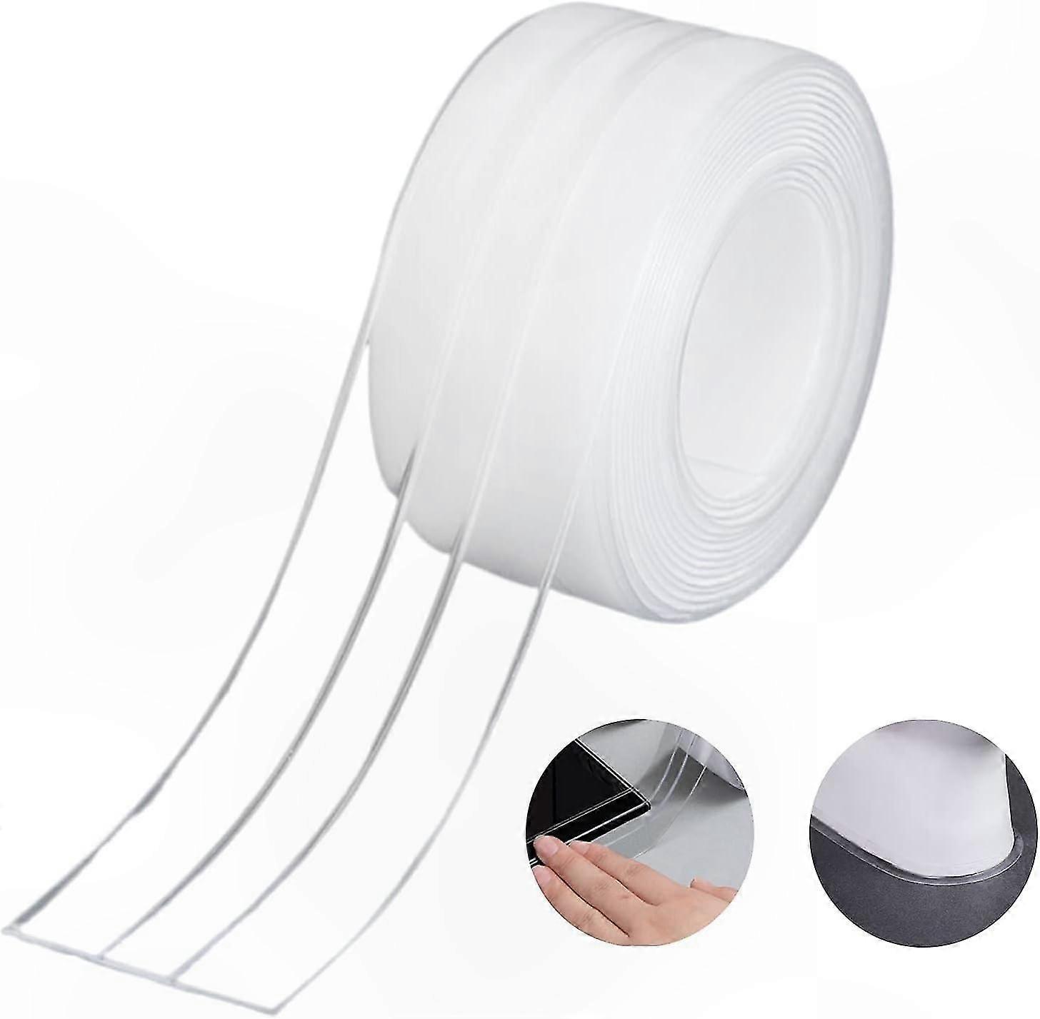 White Silicone Seal Strip for Bathroom and Kitchen, 38mm Self-Adhesive Tape, Waterproof and Mildew-Resistant Double Fold Design