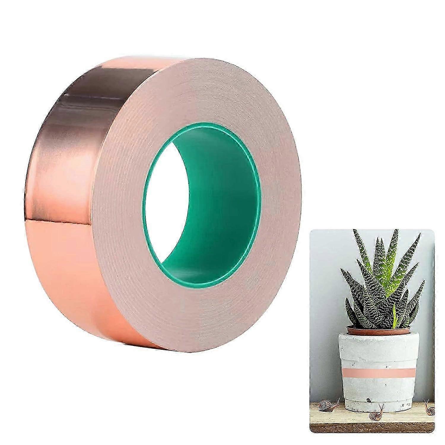 High-quality MaterialsThese conductive copper bands are made of copper. They are electrically conductive and resistant to heat, moisture,oxidation and discoloration.Stick almost anywhere with our extra strong adhesive, it works whatever the weather.<br> <br> Deter Slugs and SnailsCopper tape for slugs and snails can prevent snails and snails from entering your garden,say goodbye to nasty chemicals, simply place adhesive copper tape on the rim of the garden pots,keep the tape smooth.<br> <br> EMI ShieldingCopper tape for soldering can solution for EMI and RFI problems, protect your devices from electromagnetic and high-frequency interference.From buzzing guitars to computer cables, the copper band is an easy and quick solution.<br> <br> Low ResistanceThe adhesive copper tape for slugs is strong, flexible and highly conductive, our adhesive and foil have a really low resistance. Making the tape perfect for electrical projects, repairs and even paper circuits.<br> <br> A Broad Range of ApplicationsThe conductive adhesive copper tape has a wide range, EMI guitar shielding, snail-repellent, soldering, paper circles, educational aid, electrical repairs, household repairs, gluing, decoration, crafts etc.