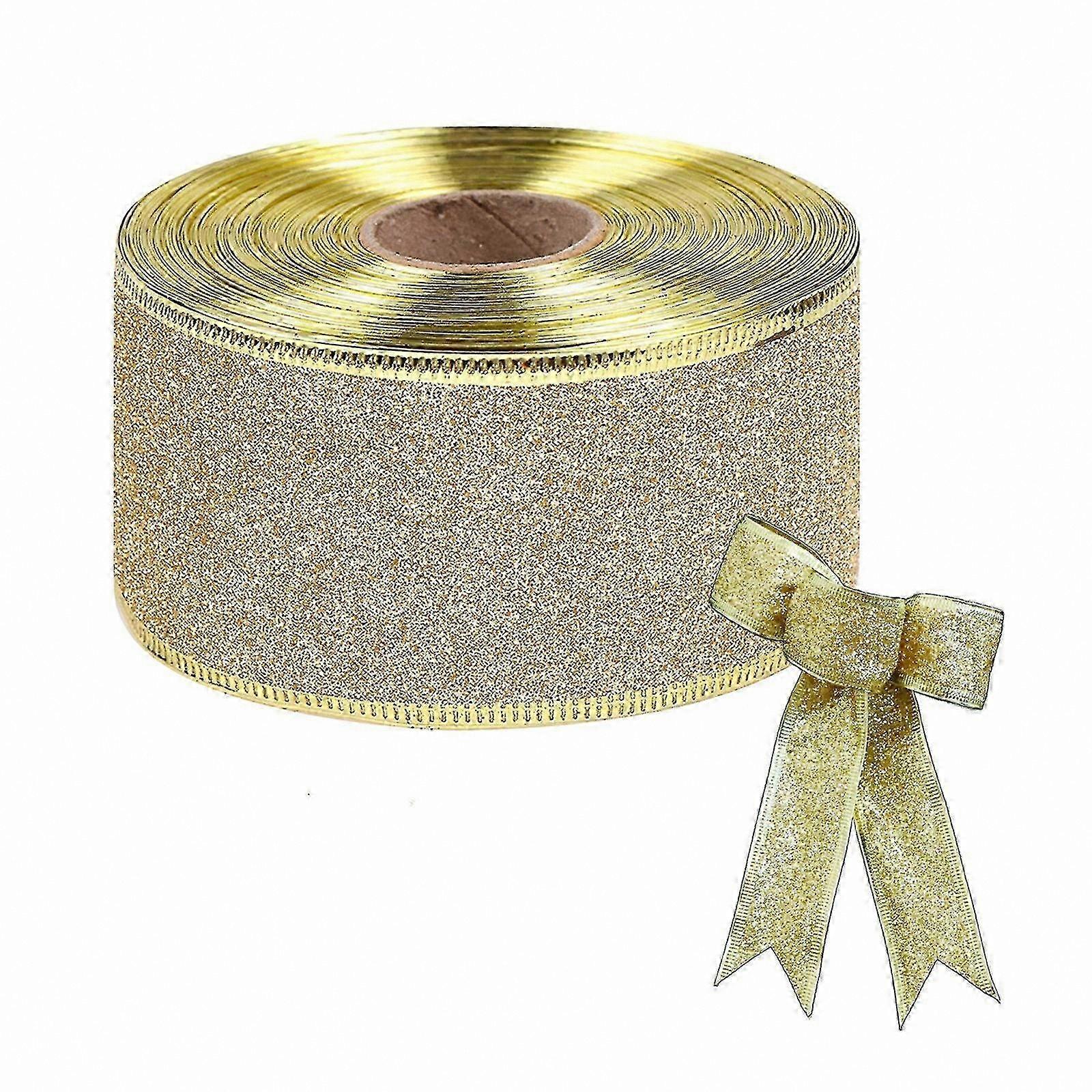 Copper Glitter Wired Ribbon for Christmas Decor, Gift Wrapping, Wreaths, and Craft Projects, 2-Inch Terracotta Ribbon with Festive Shine