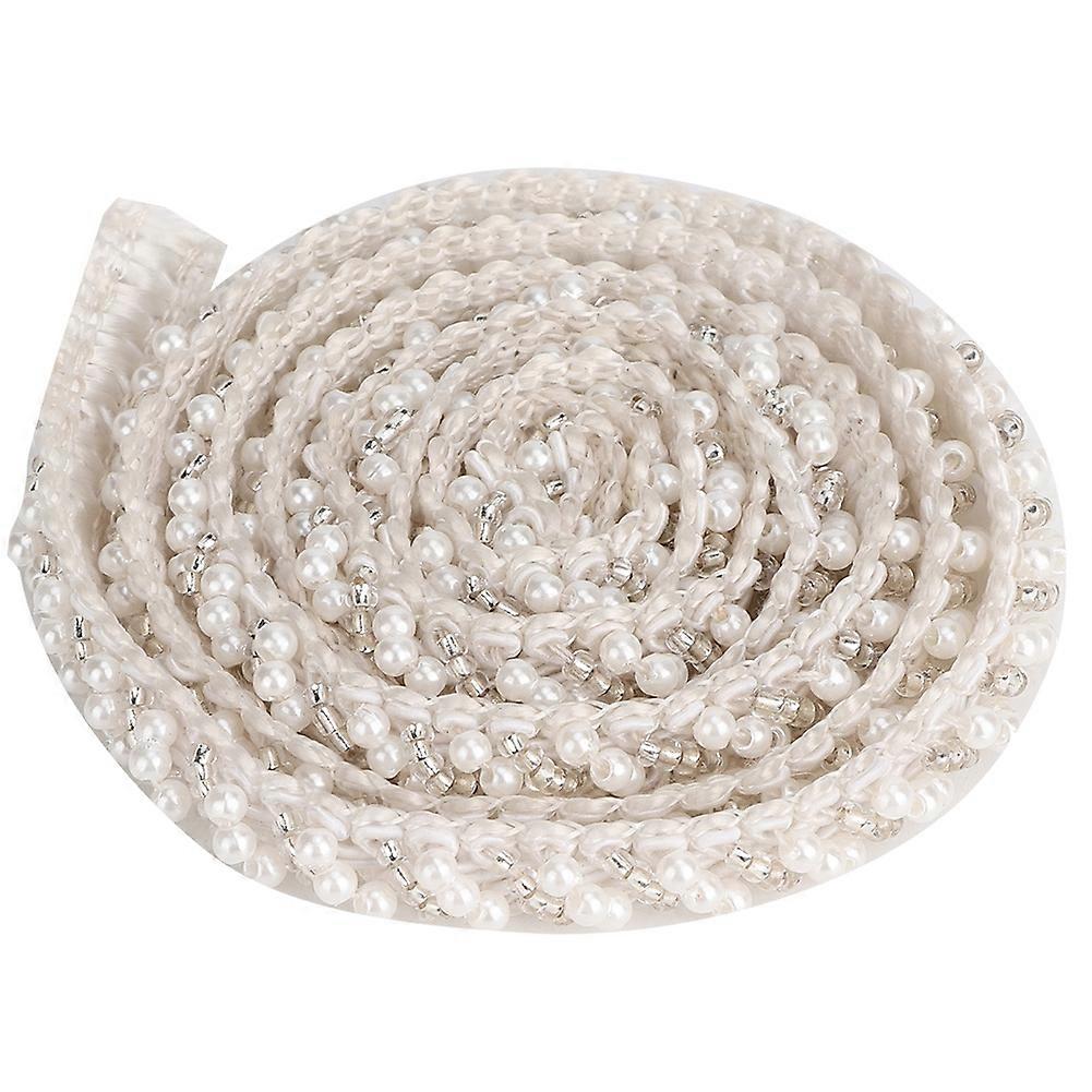 Pearl Ribbon Tape 1cm White for Sewing DIY Handmade Clothes, Embroidered Trim for Dress Decoration Accessories, 1 Yard Oblique Pearl