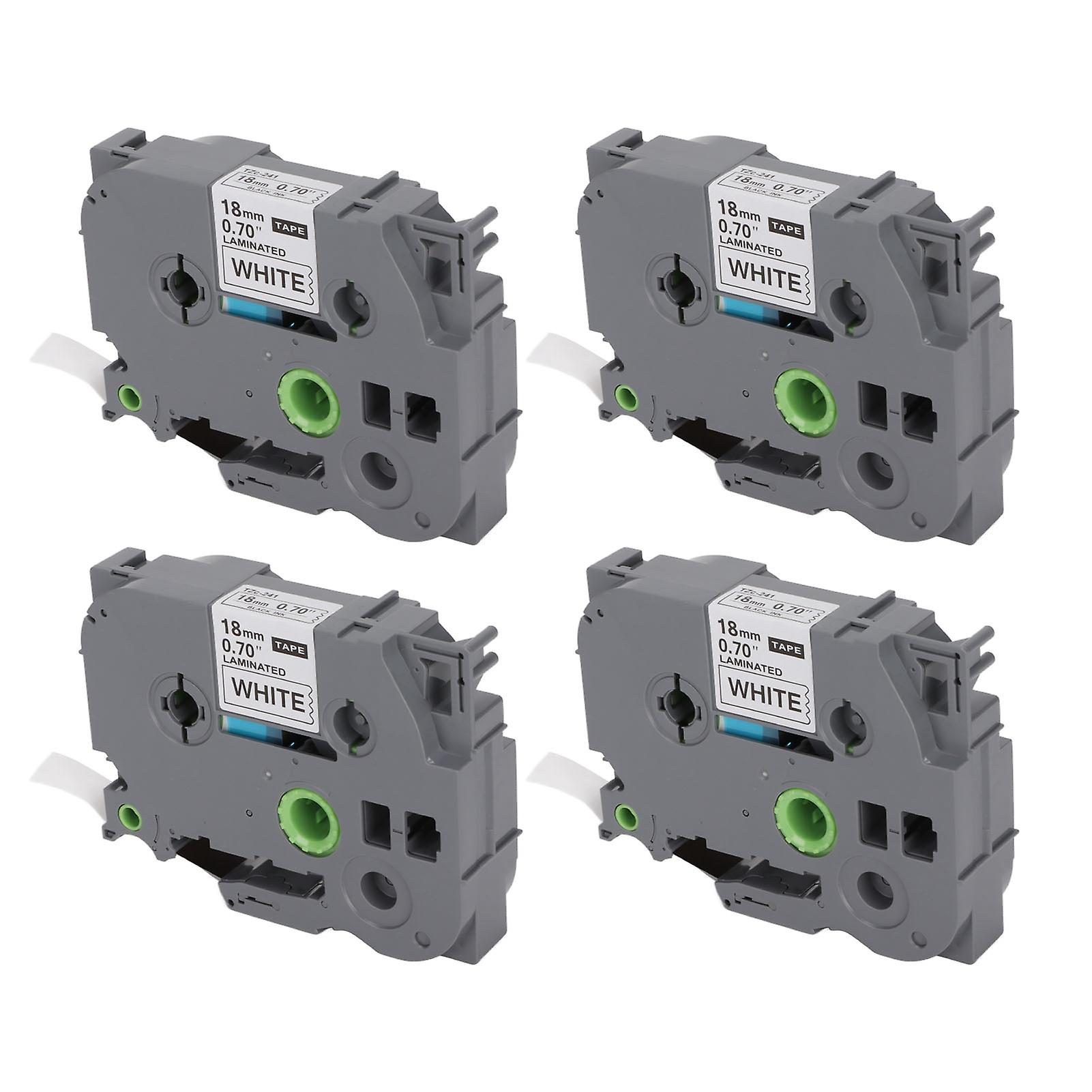Label Maker Tape 18mm Width 8M Length Black On White Label Maker Refills for TZe 141 for TZe 241 for TZe 541 for TZe 641 White Box of 4