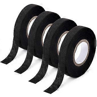 Black Insulating Tape, 4 Pieces 15mm x 15m Woven Tape Waterproof Duct Tape for Wiring Harnesses Electrical Tape
