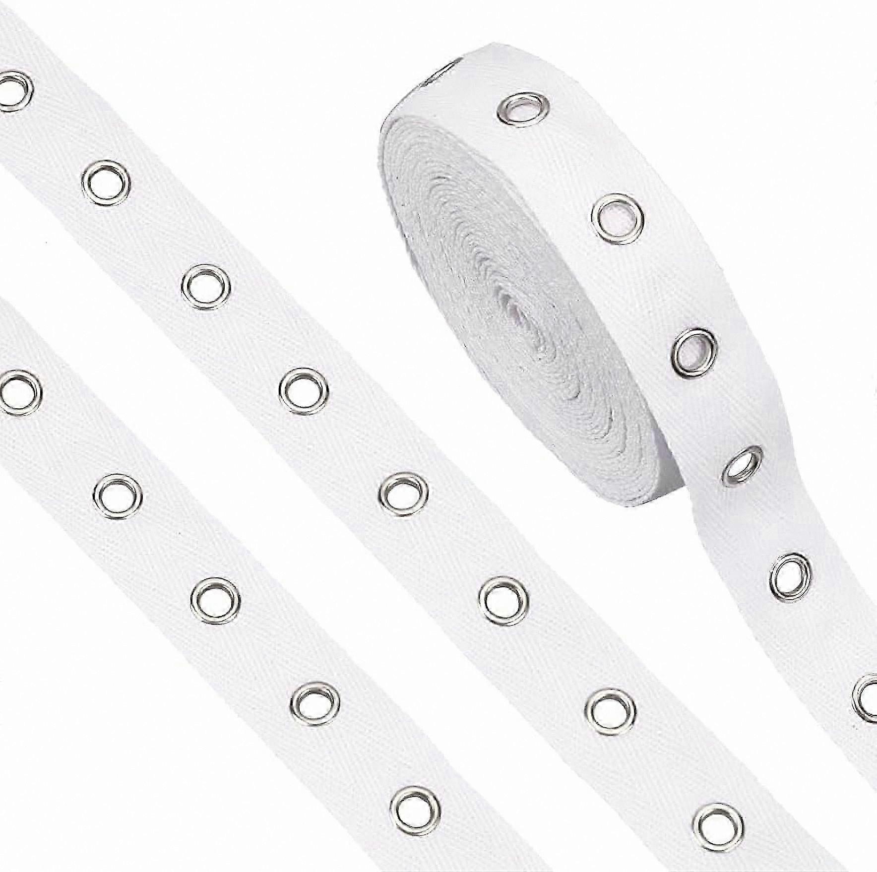 White Twill Tape with Silver Metal Eyelets - 6.25 Yards for Crafting and Sewing Applications