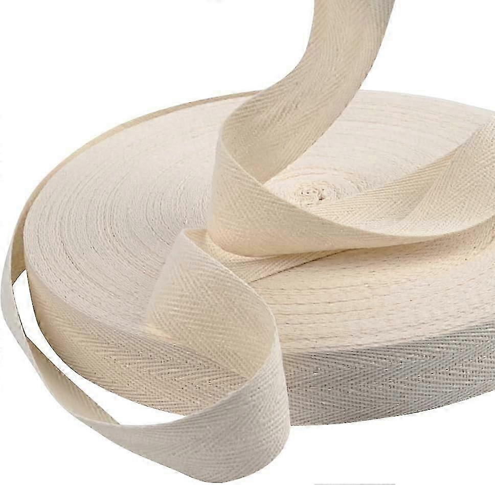 50 m x 2.5 cm cotton bias tape, seam tape with tape measure for crafting sewing piping, knitted apron, garment, white herringbone tape
