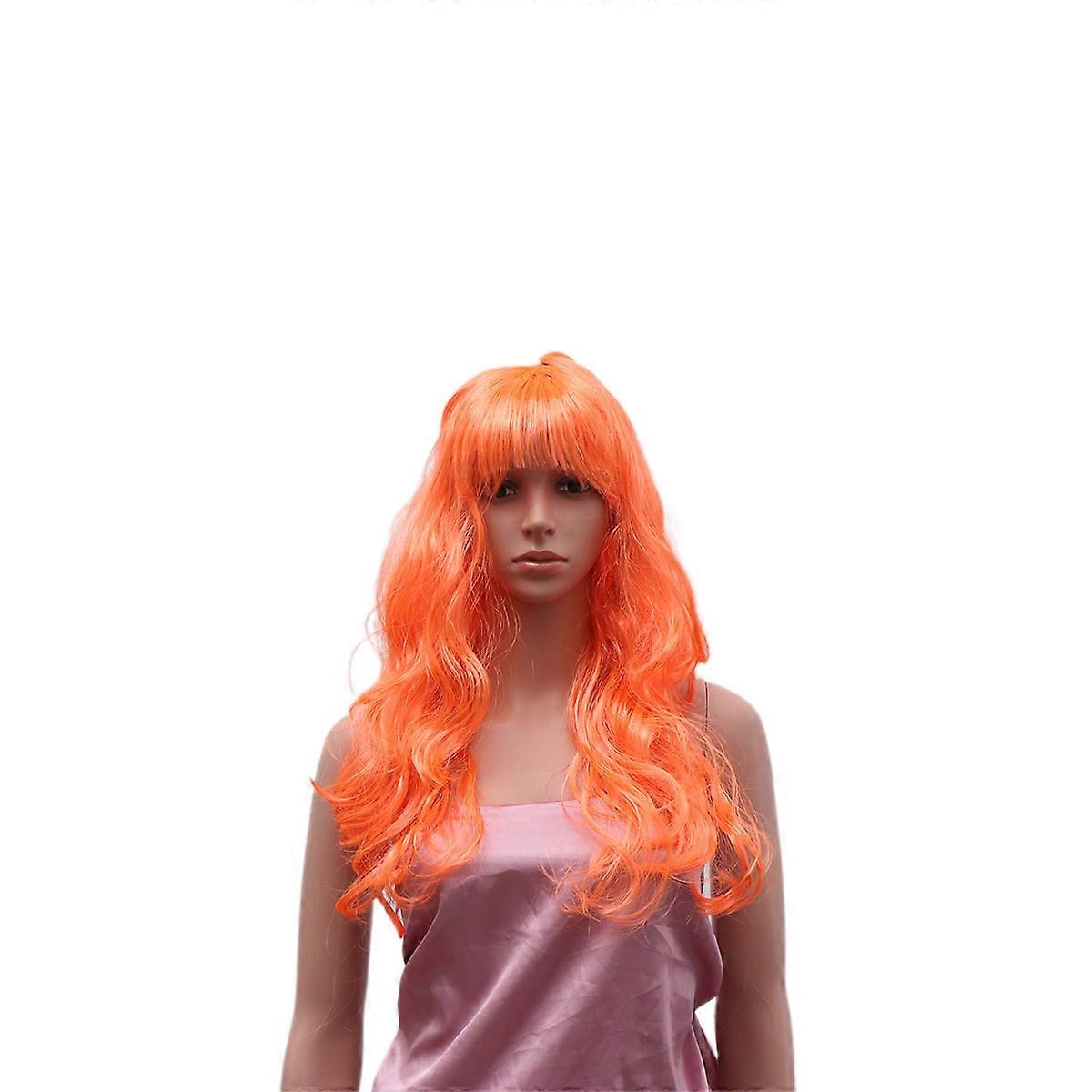 Orange Long Curly Wig for Women – Natural Look Cosplay Hairpiece with Bangs, Easy to Clean, Perfect for Halloween, Christmas Party & Performance