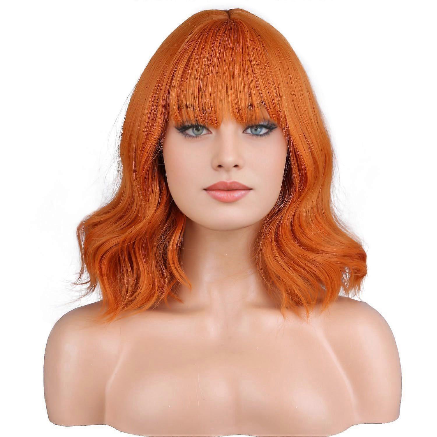 14 Inches Orange Wig with Bangs Short Curly Dark Orange Wigs for Women Daily
