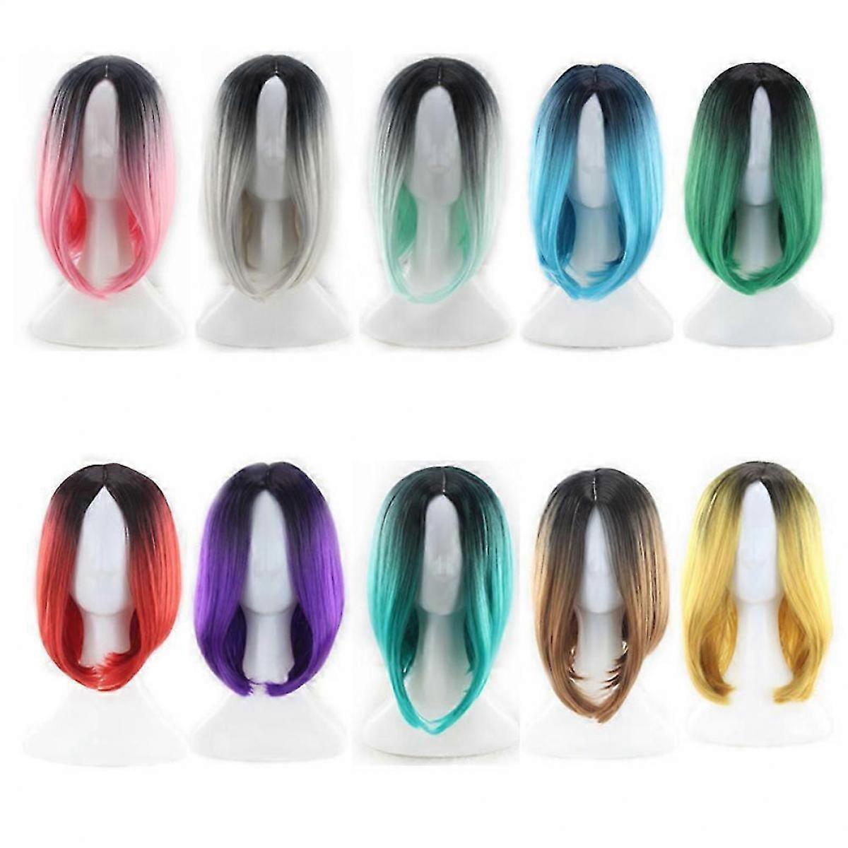 Cosplay Wigs Bob Wig Short Straight Synthetic Hair Womens Gradient Dark Green Fancy Dress Look 1Set