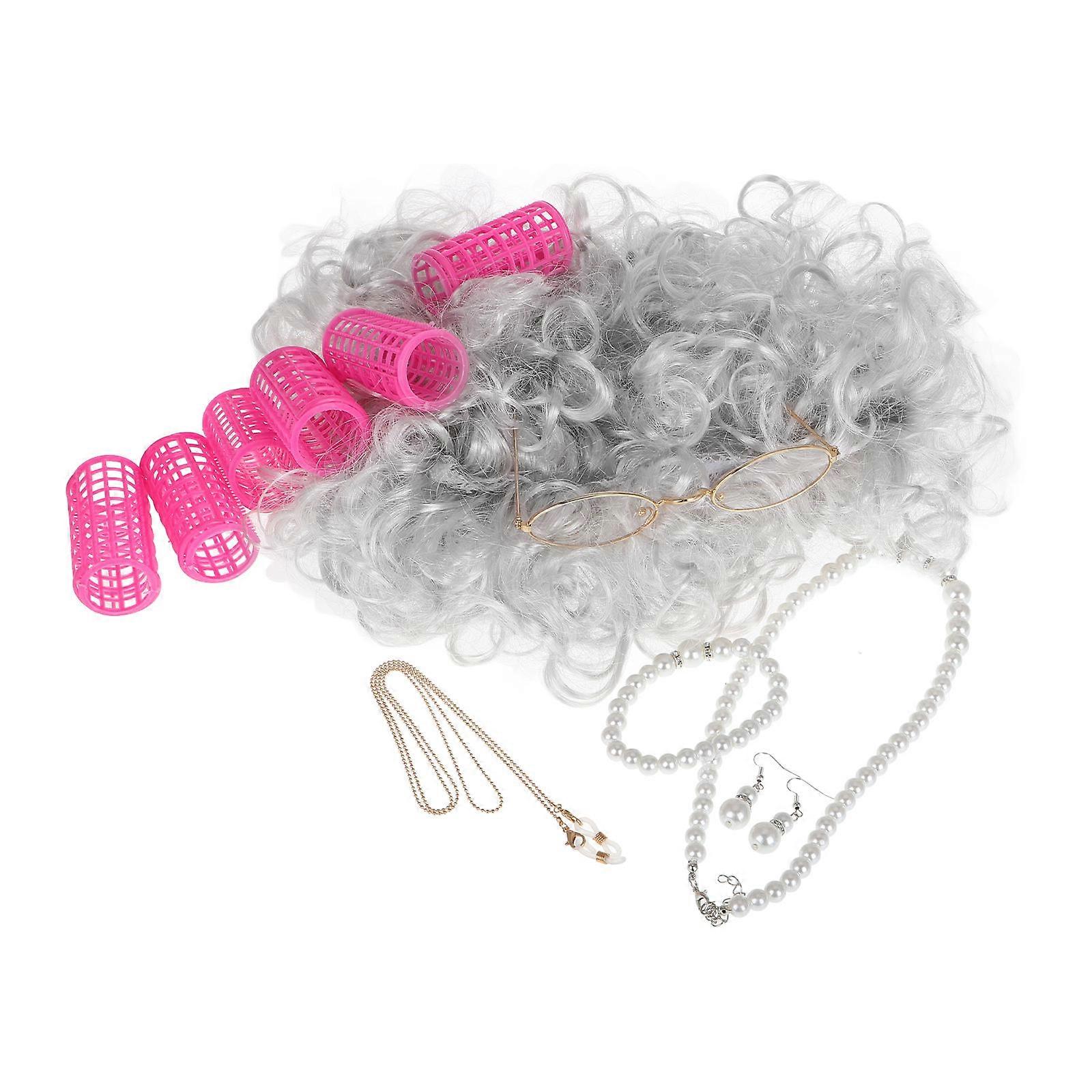 Silver Realistic Wig with Hair Rollers for Cosplay Comfortable Fit and Reusable Design Silk Plastic