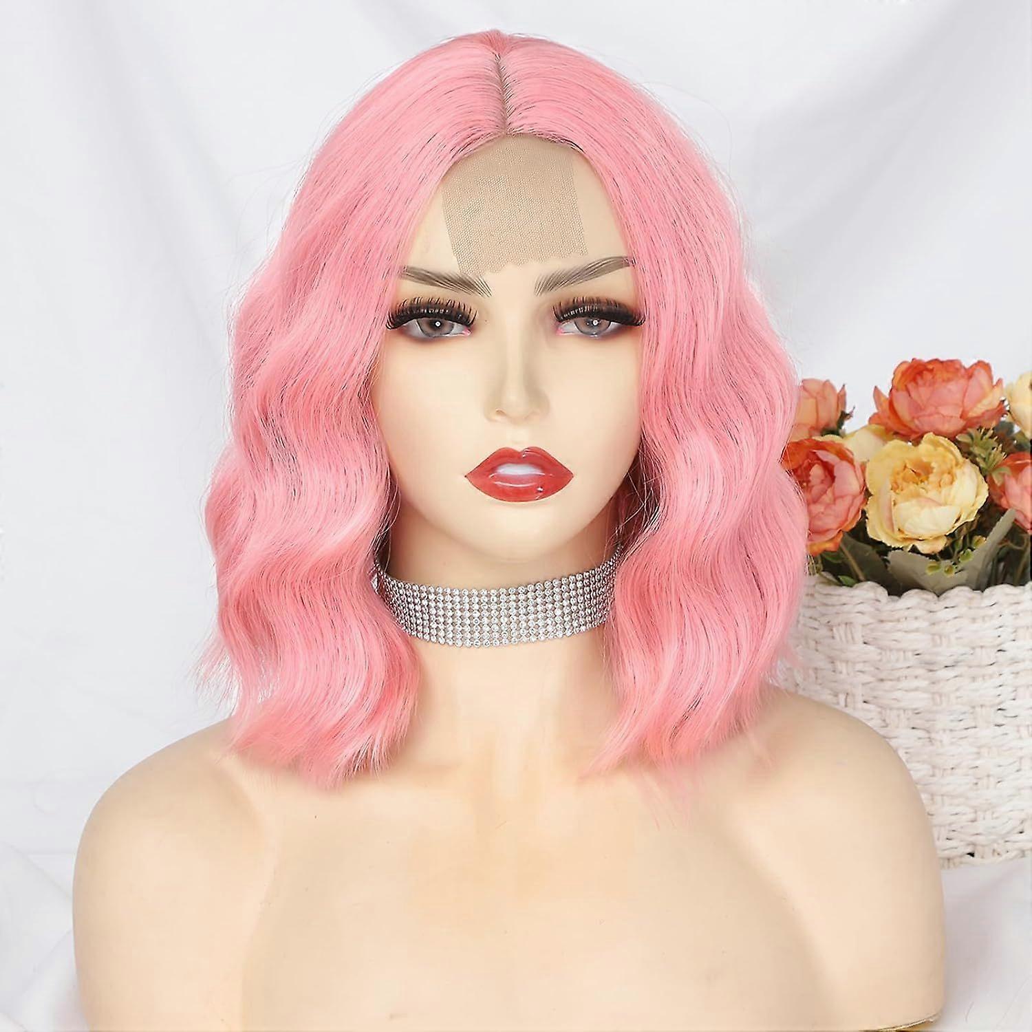 Short Pink Curly Wavy Bob Wigs for Women 12 Inch Middle Part Shoulder Length Bob