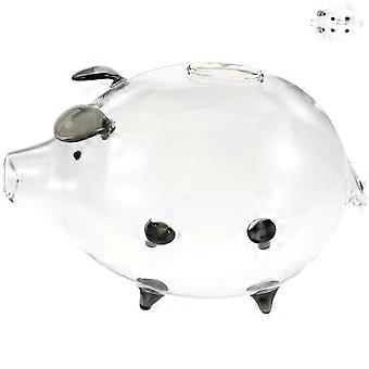 Transparent Glass Piggy Bank for Kids with Lovely Pig Design Black Color Storage Container
