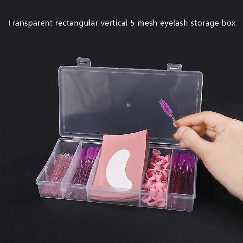 Transparent With Cover Rectangle Vertical 5 Grid Eyelash Extension Tool Storage Box Glue Tweezer Holder Makeup Organizer