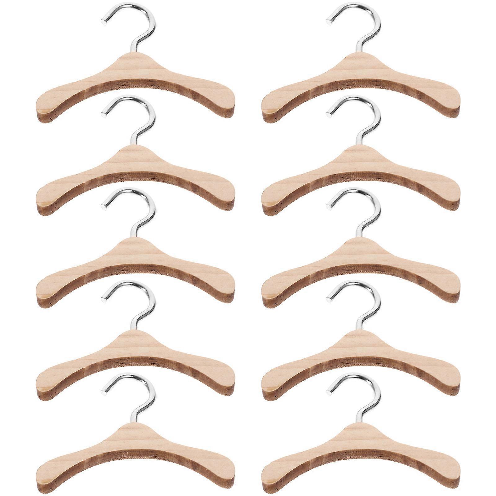 Baby Doll Hangers Wooden Clothes Hangers for Dolls Collectors BJD Simple Design Light Brown 6x1x0.5cm 10Pcs