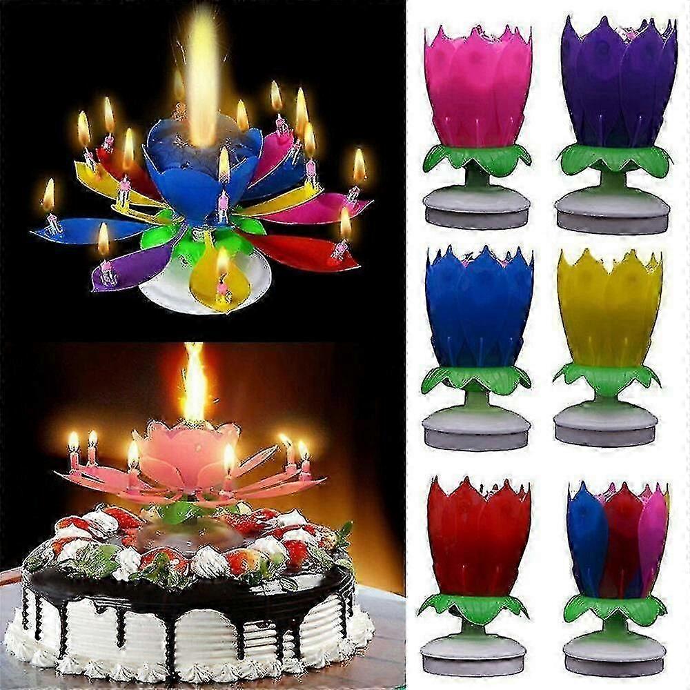 Rotating Lotus Flower Candle with Music, Floral Birthday Cake Decoration, Magic Musical Birthday Candle