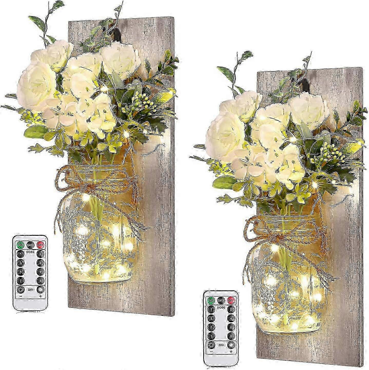 Rustic Gray Wall Sconce for Home Decor, Chic Wall Hanging Decor, Silk Hydrangea, Iron Hooks for Home