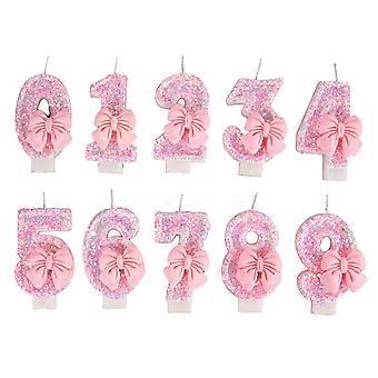 شموع تزيين الكيك بالأرقام، فيونكة وردية لطيفة، عيد ميلاد طفلة