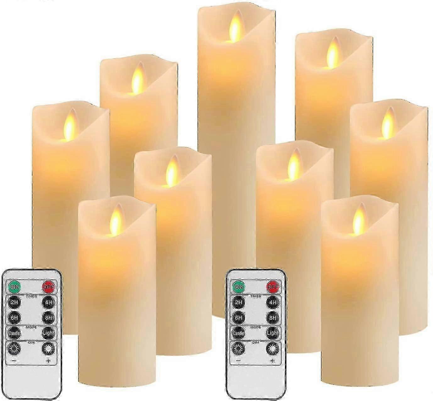 Flameless Candles 9 pack LED Lights Moving Wick Ivory Electric Pillar Battery Candles Real Wax Flicker Lights Votive Flames Remote Control with Timer