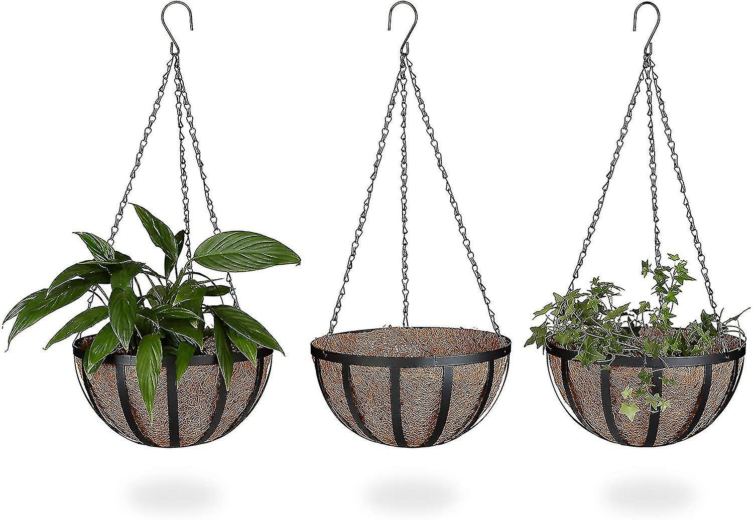 Hanging Flowerpot Basket Coconut Plants Set Of 3 30 Cm Diameter 21 L With Chain, Brown