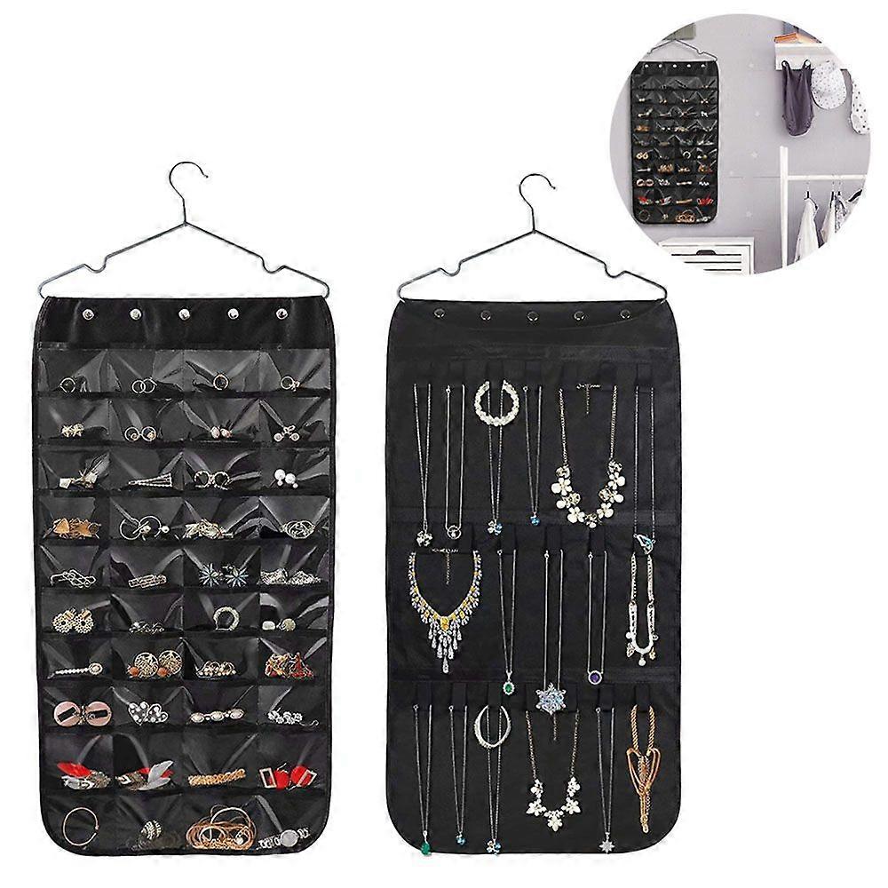 Hanging Jewelry Organizer, Double Sided 40 Pockets and 20 Magic Tape Hook Jewelry Organizer, Necklace Holder Jewelry Chain Organizer