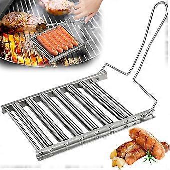 BBQ Hot Dog Roller Grill, BBQ Accessories, 5 Hot Dog 6 Roller Grill Cooker Warmer with Handle, BBQ Tool, 20.5 * 13.5 cm