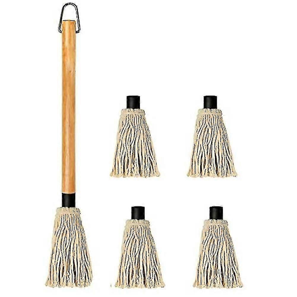 Grill Basting Mop Wooden Long Handle With 4 Extra Replacement Heads For Bbq Grilling Smoking Steak