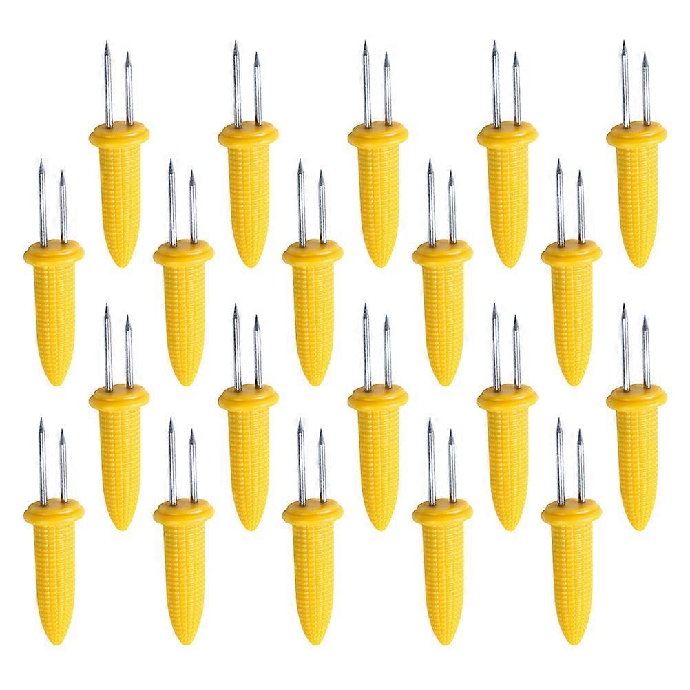 Corn Forks Stainless Steel Portable Grilling Fork Small Yellow 20Pcs BBQ Supplies