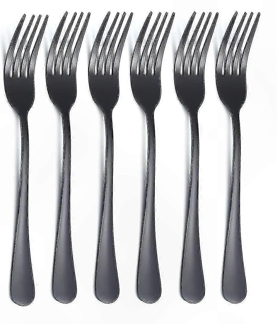6-Piece Black Titanium-Coated Stainless Steel Dinner Forks, 8.17 Inch Cutlery Set