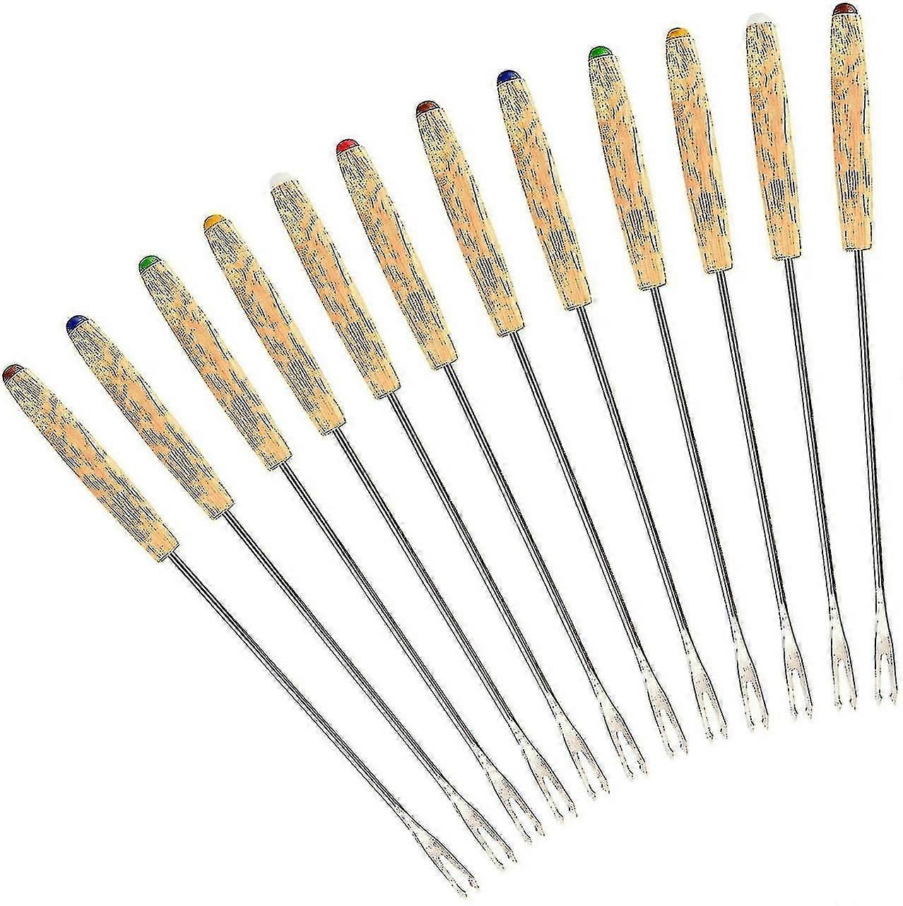 Stainless Steel Fondue Forks, Set Of 12, Roasting Sticks Marshmallow, Heat Resistant Oak Wooden Handle (24cm) (hs)