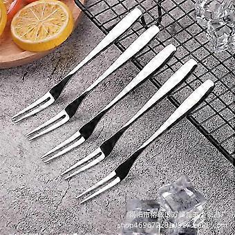Stainless steel 2-claw fork, fruit, dessert, salad fork, portable fork, set of 10 silver