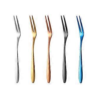 Western Food Snack Fork, Cake Salad Fork, Hotel Supplies Business Party Household Western Tableware(5pcs, silver+gold+rose gold+black+blue)