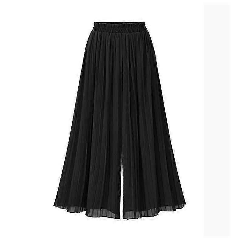 Chiffon Women Wide Pants Pleated Beach Culottes Loose Cropped Pants High Waist Thin Wide-Leg Trousers